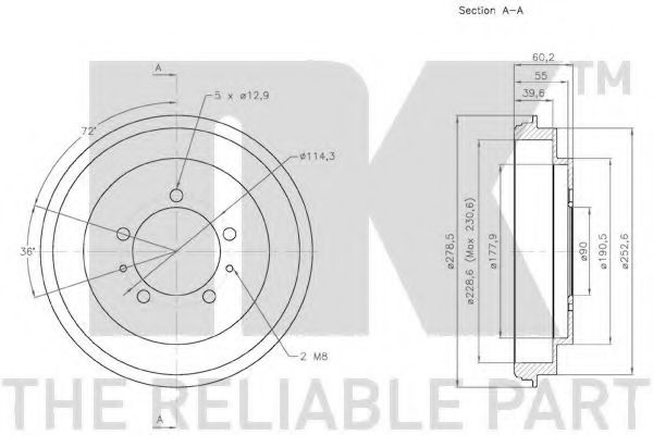 спирачен барабан NK MITSUBISHI, OUTLANDER I (CU_W), 2.4 4WD (CU5W)